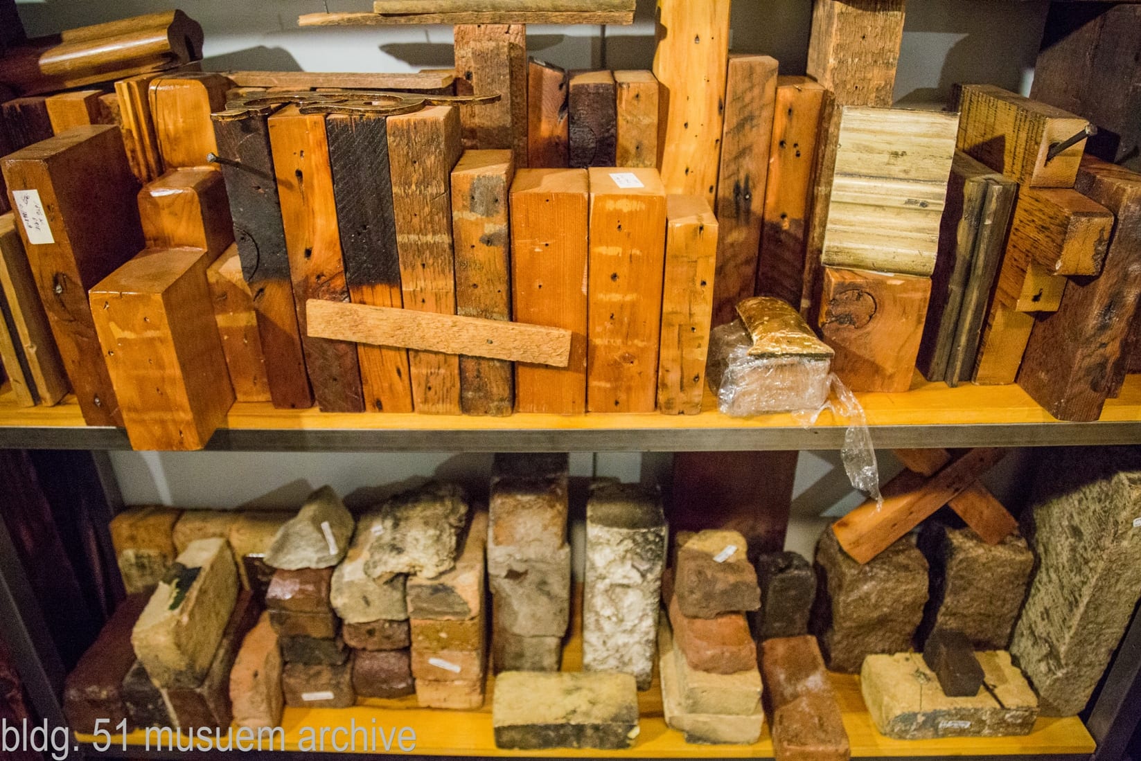images of the 19th century balloon frame “specimen” library for use with “deconstructing chicago” book. a massive repository of cataloged sill plates, tree nails, tie rod anchors, brick, lath, joists, hardware, square nails, studs from demolished cottages is safely housed in the bldg. 51 museum archive.
