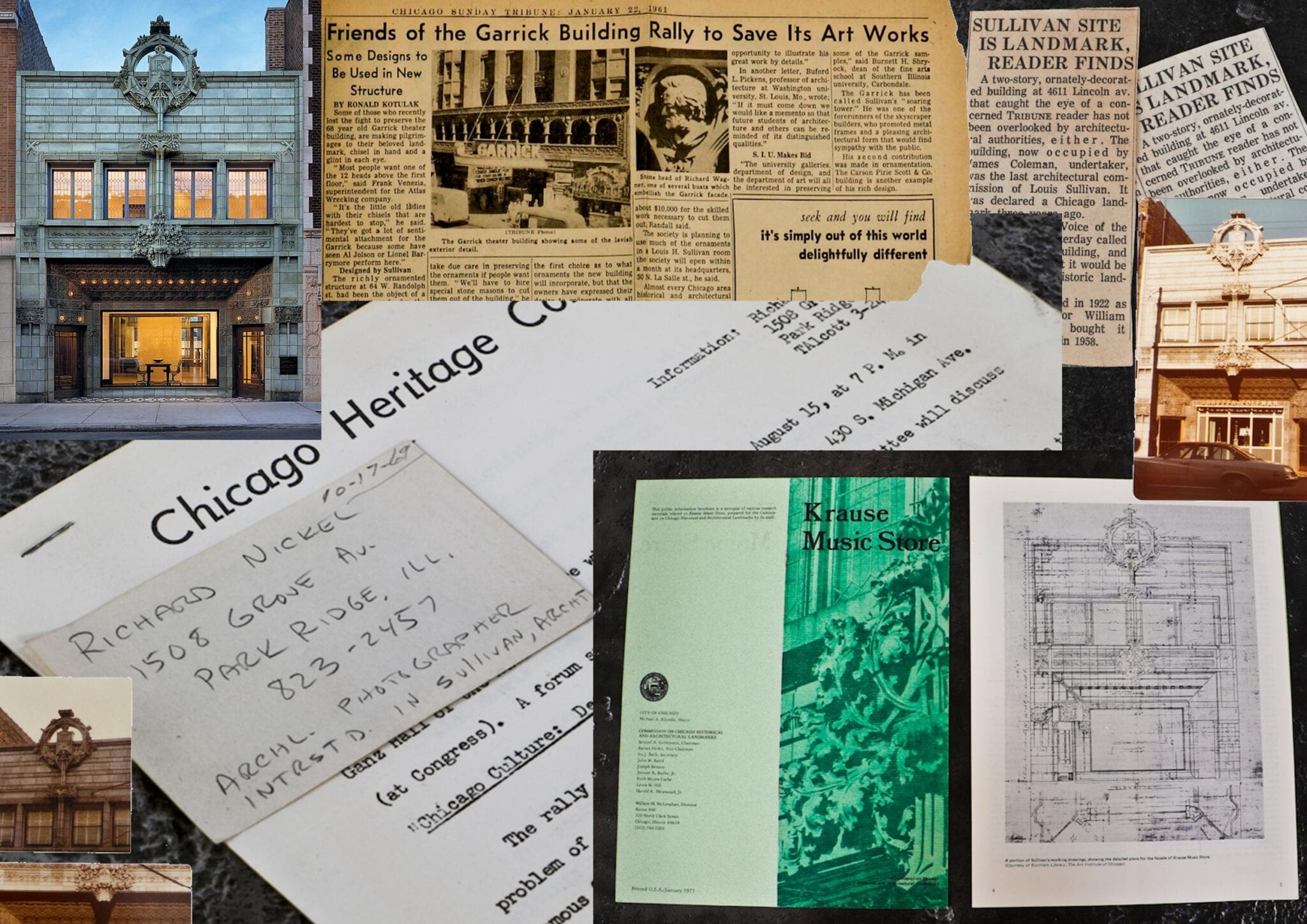 30 Sep documents pertaining to richard nickel, louis h. sullivan, and the krause music store added to bldg. 51 museum