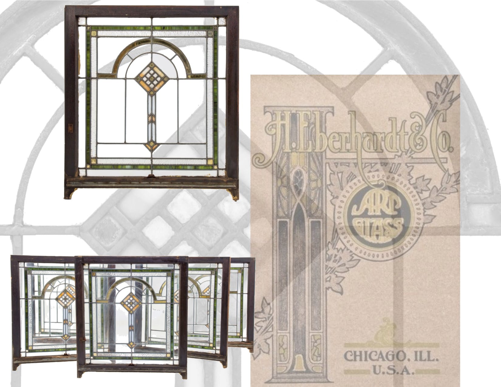 several original and highly desirable early 1920's antique american craftsman style interior residential leaded art glass windows were recently salvaged from a chicago bungalow last week. the all original and amazingly intact strongly geometric windows were designed and fabricated by the notable chicago-based h. eberhardt...