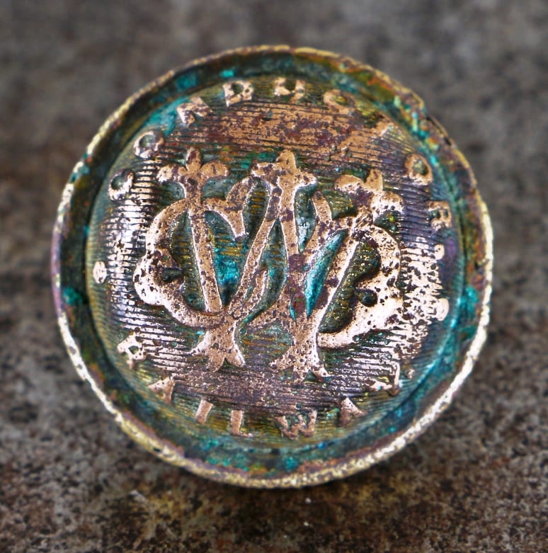 when rubble from the demolition of the building decades ago came spewing out, i was incredibly disappointed, but with some perseverance, i managed to remove it all, where i came across several inches of moist sludge resting several inches above the wood floor. there, within the muck, i recovered objects, including a few medicinal, soda and beer bottles, numerous household fragments, a salt-glazed pot and a single railroad conductor’s coat button made of brass with a fanciful monogrammed center.