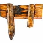 detail of horizontal framing timber containing a hand-hewn section (shaped with an adze)