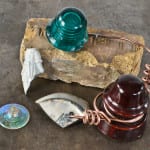 additional finds recovered from the same dig site shortly after i created this blog post. this subtly mottled brown ceramic insulator with the original copper wire still attached was a great find. the wiring and insulator cleaned up nicely for photo-documentation in the studio.