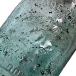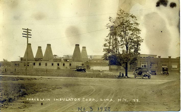 the porcelain insulator company (1921-1987) fabricated this richly colored chocolate brown insulator in their factory located in lima, ny. artifacts or objects found near the insulator dated to the depression, which included a borden’s milk bottle. the earliest artifact discovered thus far from this site is likely the “j. jerusalem” pottery bottle with tapered cobalt slip glaze applied lip, which was likely made during the 1880’s (see images above).