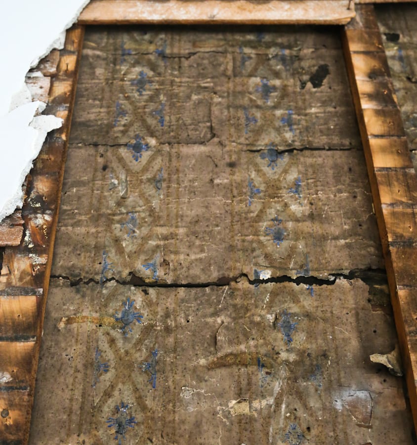 the white pine studs were partially hewn and sawn and the lath contained a thickness and roughness consistent with houses from the 1860’s. perhaps the most impressive features were the remarkably wide pine wood boards used as sheathing, with clapboard nailed to the exterior and the studs, butted up against the interior. the rough-sawn boards were devoid of tongue and groove joints and the size of the boards varied from one to the next. when exposed for photo-documentation and sample retrieval, it was indeed a sight to behold, despite having discovered this time and again in other cottages erected within the same time period.