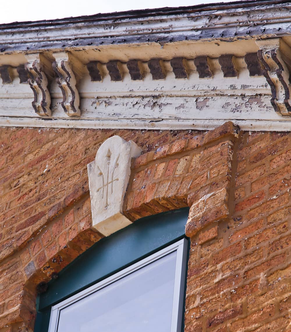 very little of the interior framing was found, suggesting the house had been thoroughly “gutted” at some point in time. there were some original floor joists and the firring strips fastened to the bricks walls to mount the plaster walls, which were largely intact, but altered nonetheless. there were additions on the back of the house, including a fully enclosed porch. sadly the arched sandstone window headers contained badly damaged keystones (each surround consisted of three stone sections), and they could not be salvaged. the larger, pyramidal-shaped stones added to the windows above the garden unit were intact and secured without problem.