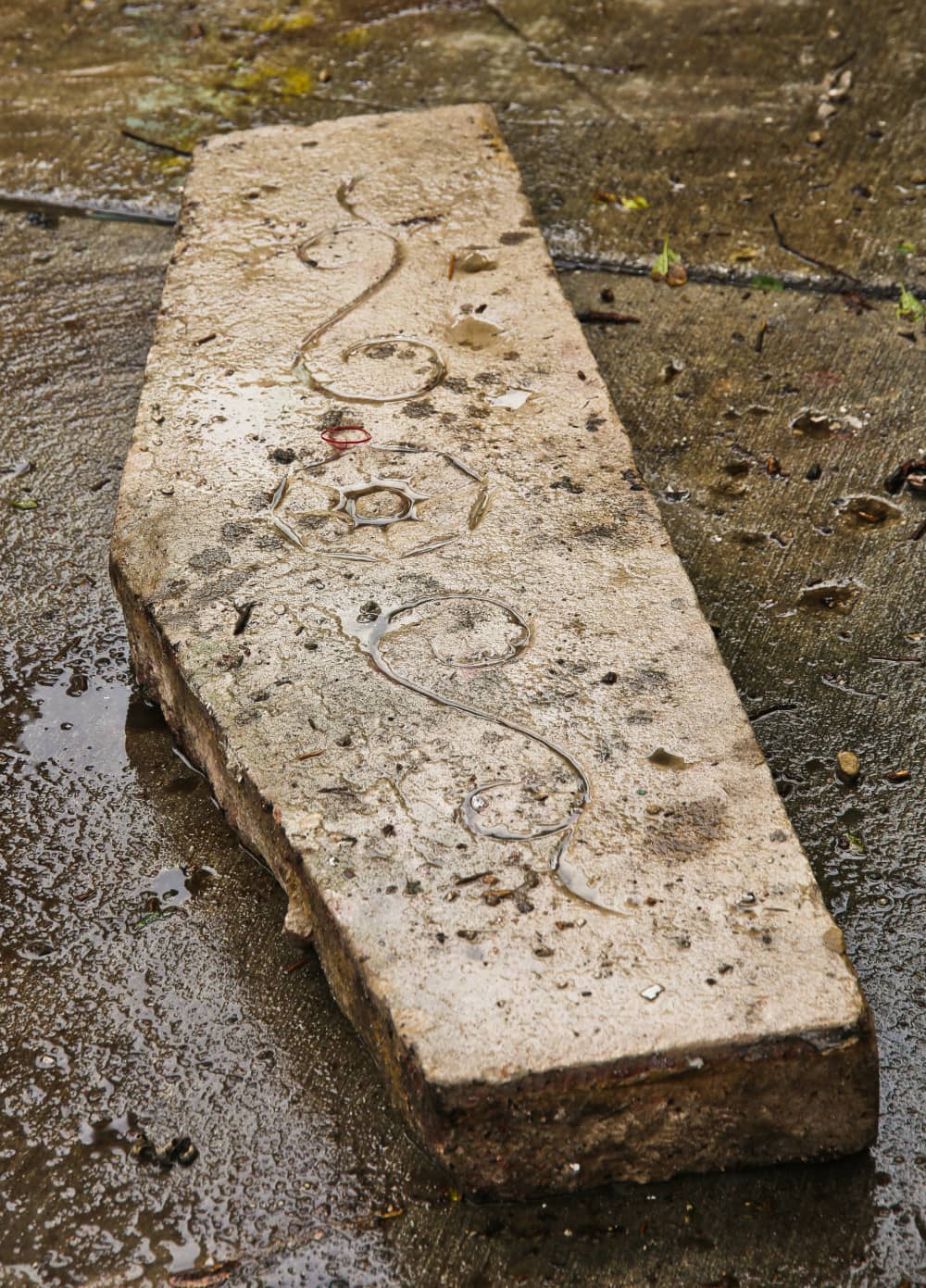 since the larger header stones contain designs more indicative of 1880’s construction. it’s plausible that the original single story cottage was raised early on and that with the addition of the lower unit, the facade was subsequently altered. this may very well have led to the existing beams being trimmed down in (crude fashion) to accommodate the new construction. this of course is pure speculation, but after further analysis of the photographic images taken before, during and after the demolition, it seems possible if not likely.