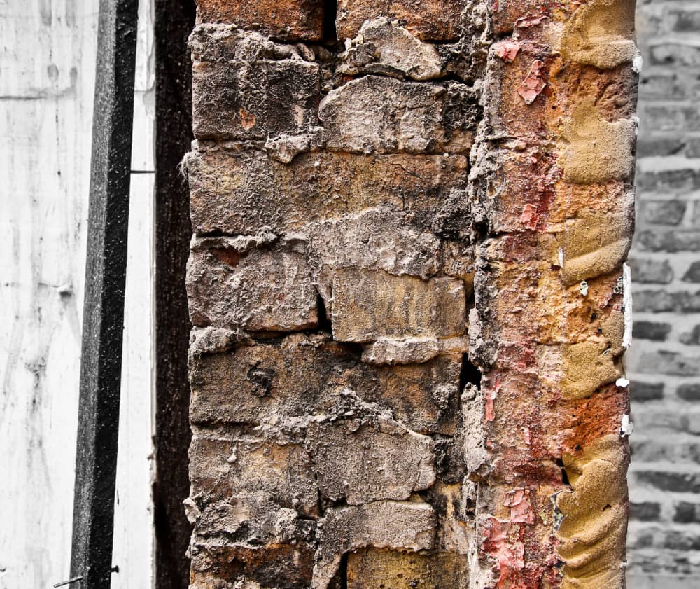 the use of structural beams in 19th century chicago cottage masonry construction requires more data since this house represents only the second such cottage found where beams were used in a structure enclosed within masonry walls built from the foundation wall on up to the framing supporting the pitched roof. in both cases, the cottages employed the use of mortise and tenon-jointed beams that were delivered to the site fully sawn. during the erection of the house, though, it seems they were shaved down on the sides facing outward – hidden behind three layers or courses of brick, with the outermost layer serving as the face brick. again, more research is badly needed in order to fully grasp this “method,” which i’ve only encountered once before (note that any and all other brick cottages containing beams are not altered in any way during initial construction).
