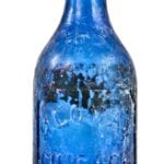 meanwhile at the crane mfg. building addition, the earliest type of glass soda bottle produced by william henry hutchinson was brought out from the ground– a cobalt blue iron pontiled blobtop embossed all along the front body “hutchinson & co / celebrated / mineral / waters / chicago.”