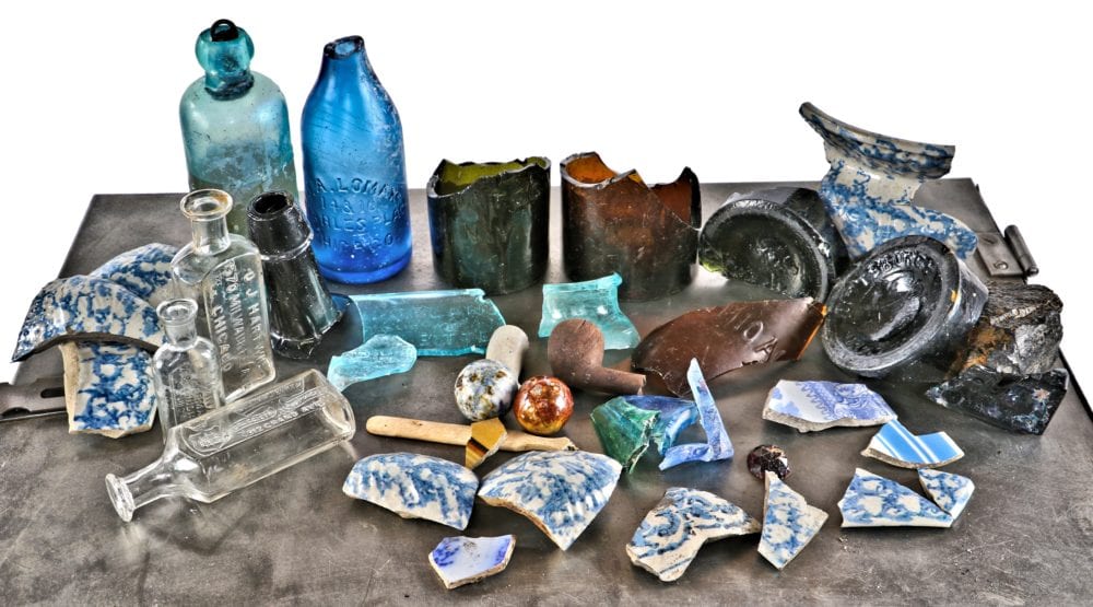 these fragmented materials in and of themselves provide insight into manufacturers of the nineteenth century, production methods, and what daily household goods were used. they were buried long before the first skyscrapers appeared, before the civil war, before the great fire swept through the city, and before many of the streets were raised to implement a modern sewage system.