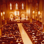 boniface church began as a german congregation in the 1860’s and has since slowly transformed with each population of immigrants arriving to the area (the standing structure was built as the neighborhood became predominately polish). according to accounts from the period, this area– which at the time was just narrowly within city limits– was covered in a vast expanse of small wood frame buildings. a total of 20-25 catholic families resided there after having emigrated from germany. at first sparsely settled, the district was a veritable swamp, before dirt roads were paved, and streets raised 10-15 feet. elevation of the streets in fact caused flooding, and the growing neighborhood population exacerbated problems with the early sewage system. there, just west of the chicago river and on the outskirts of the city, st. joseph’s church was established in 1862, a one-story frame structure that served as both a church and school—the only one in the area (at the corner of carpenter and chicago avenue). the small mission led to ever more growth in the area, and eventually it was necessary to build a new church. a committee agreed to erect one at the northeast corner of cornell and noble streets, the site of the present st. boniface church.