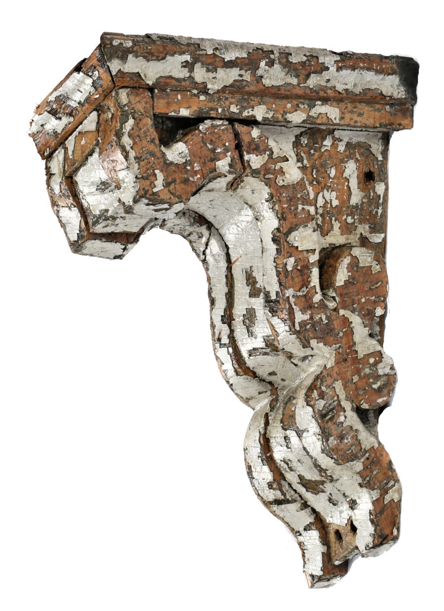 additional artifacts and/or objects discovered after the wood-framed structures was taken down. the roll of 19th century wallpaper, “active pleasure club invite” (1880), and several marbles were found along the sill plates between the cottage and the brick walls, supported by the original limestone foundation. aside from multi-part molding and a cast plaster ceiling medallion removed from the interior, i only had time to rescue some bargeboard, brackets and window headers – all comprised of white pine.