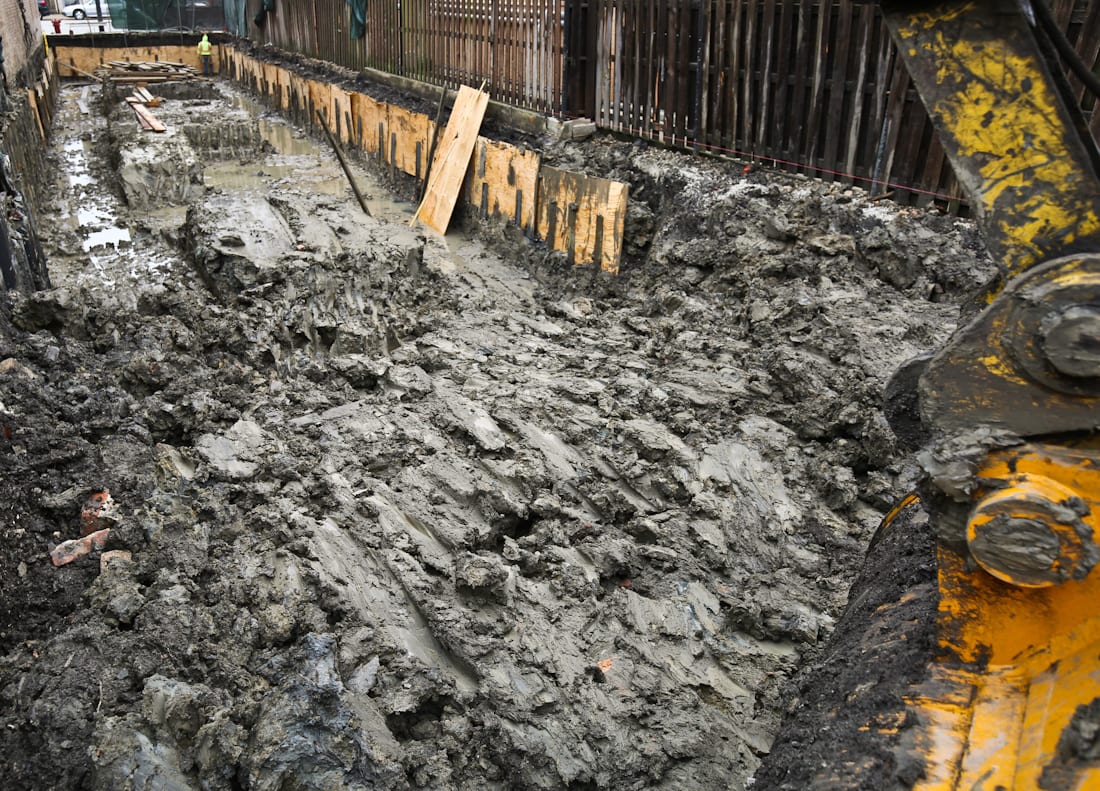 earlier this week a 19th century residential privy pit or “vault” was discovered during the excavation of a west town neighborhood lot, where a single story framed-wood cottage once stood. just one year ago that residence succumbed to the wrecking ball. the demolition is sharp in my memory, but i temporarily abandoned the site after learning excavation of the lot would not happen anytime soon. finally, after several months, i was able to return to the site to document what, if anything, was waiting to be discovered underground.