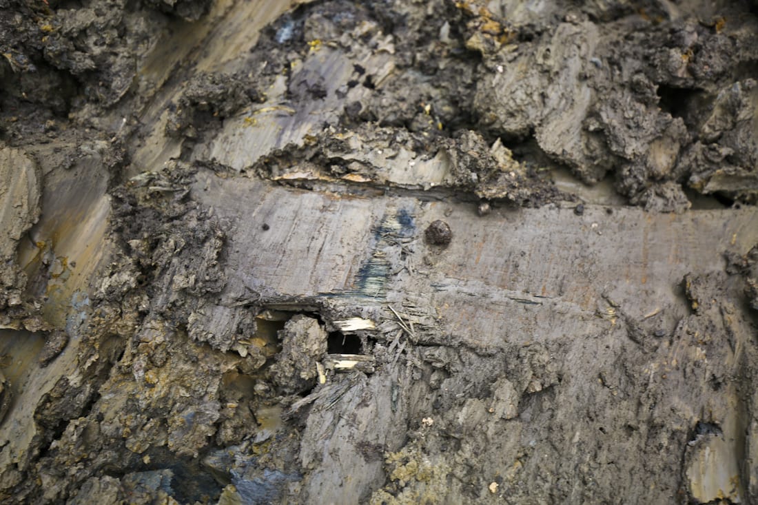 after a few hours documenting the pit’s discovery, and collecting all available bottles and fragments, i carefully extracted the wooden privy pit floor to be cleaned and reassembled back at the shop. the bottles and fragments will be cleaned and photographed as well.