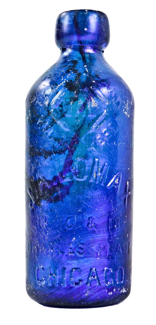 john a. lomax entered the bottling operations in 1854, distributing soda water located at 38 w. lake street in chicago. in 1859, the plant was destroyed by fire and operations were moved to a two-story frame building located at 16 charles place. as business grew, john and his son george erected a large masonry building in 1871, which was consumed by the great chicago fire the same year. shortly after, lomax rebuilt an even larger four-story facility that was advertised as being the “largest bottling house in the world.” during their peak production years, lomax serviced more than five thousand of the approximately seven thousand saloons across the city of chicago. their bottling works furnished soda-waters, ginger ale, mineral and spring water, ales and other drinks. the company ceased operations in 1885.