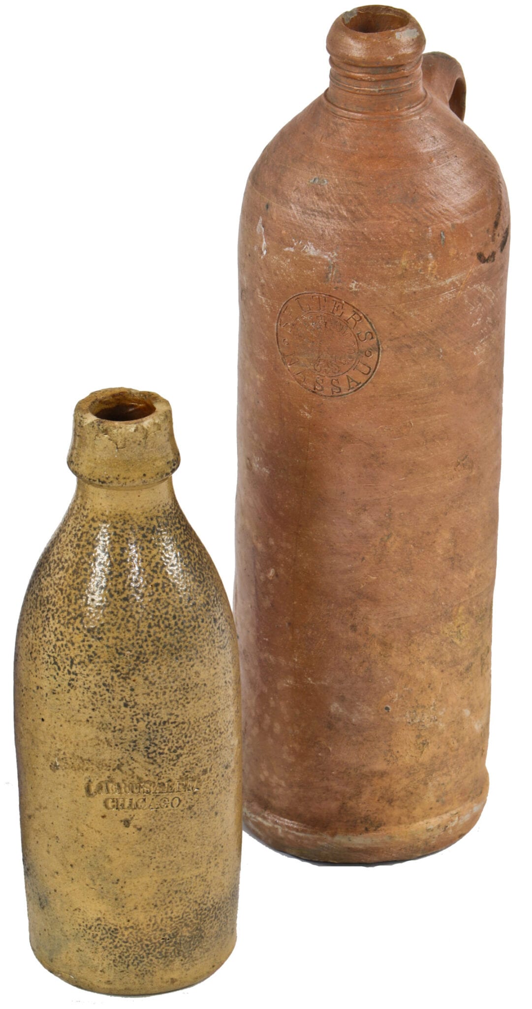 houck & dieter offered “nassau selter” imported from the nassau selter co., ober selter, germany from 1893 to 1895. the company bottled its products in ceramic containers such as straight-sided, circular wheel-thrown stoneware jugs or jugger-made, with the bases usually exhibiting a series of concentric looped ridges left by the wire used to cut the clay base off the wheel. the exterior surface is salt-glazed. the necks are quite short and bear a series of encircling embossed ridges intended to help secure the wire for the cork. each jug has a single applied handle which loops from just below the base of the neck to the base of the shoulder. the jugs were manufactured in the nassau district in western germany at hohr, grenzhausen. nassau selter bottles carried an impressed seal with selters (arch) / nassau (inverted arch) around a german eagle that contains the initials, f.r., on a shield on his chest. the bottles were exported to england by at least the early 19th century and may have arrived in the u.s. as early as 1846. the water which was imported at london was brought over in stone bottles, closely corked and cemented containing about three english pints each, which means the water, as long as the common air was excluded, would retain many of its excellent qualities for several months. the water was abounded with an alkaline salt in a much greater quantity than any of the other known mineral waters at the time. the water originated at selters spring in niderselters, germany, a naturally carbonated spring. the spring was the best-known in germany, and waters were exported worldwide during the 18th and 19th centuries.