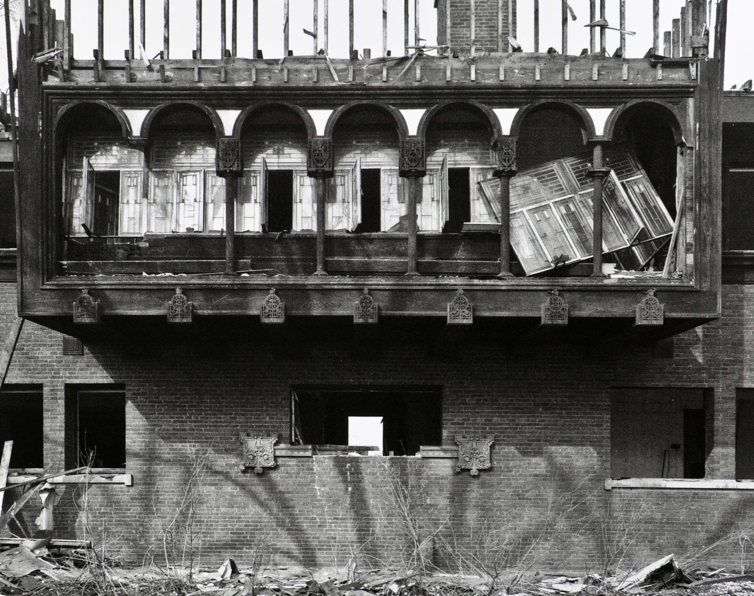 when the house was faced with demolition in 1960, richard nickel, his brother donald, john vinci, and david norris documented its death and salvaged its ornament. nickel expressed very little interest in the leaded glass windows. instead, he and his associates spent many days extracting the second-floor loggia, which was one of the largest “systems” removed from the house before it was quickly flattened in february of that year.