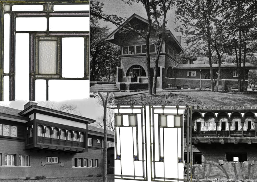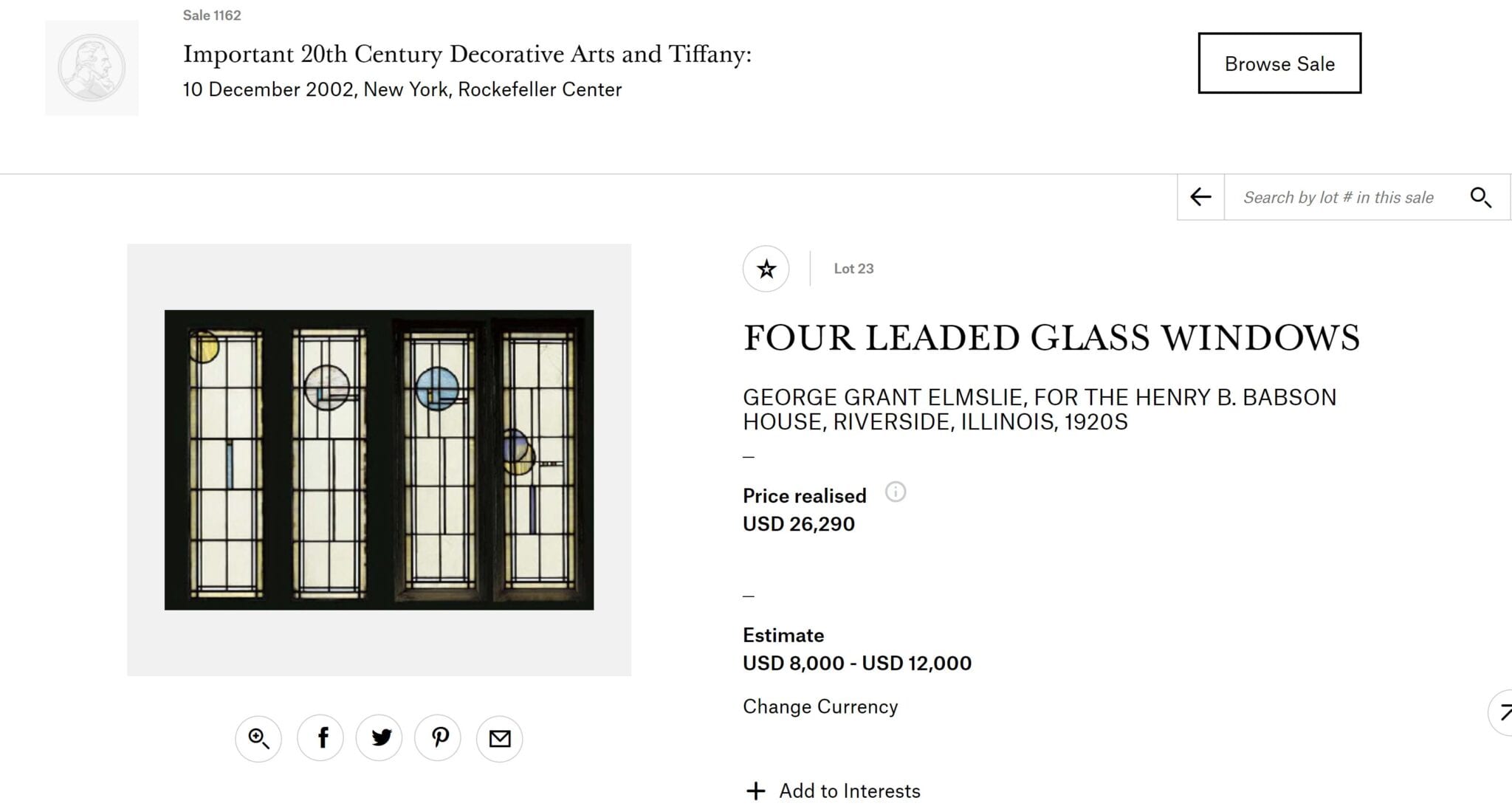 a pair of leaded glass windows original to the henry babson house (salvaged before its demolition in 1960) were purchased for the bldg. 51 museum this month. since i only aimed to acquire a single window for the museum, the counterpart made its way to cultural historian and friend tim samuelson. aside from gifting the window to tim, i got in contact with him immediately after they were secured, to gain insight into who designed them (was it elmslie with sullivan looking over his shoulder?) and what history they held pertaining to the time the house was demolished. as it turns out the windows are an interesting portal into the simultaneous downslope of sullivan’s career and upswing of his pupils’. in keeping with this, the babson house was the site of a terse dynamic between the most influential architects of the prairie school.