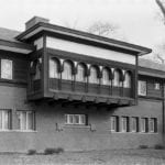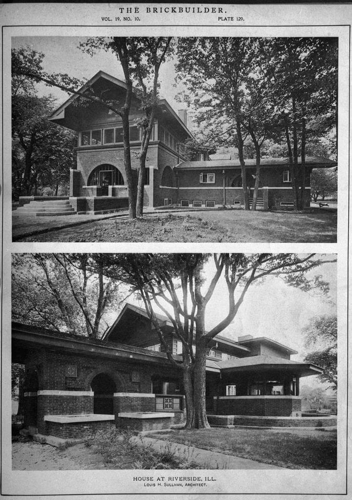 the henry babson house (1908) was one of only a few residences designed by louis h. sullivan with george grant elmslie as his draftsman. the building additionally represented one of the last dwellings that sullivan would design before his decline into poverty. the state of his finances is clear from an anecdote leading up to the commission: henry babson purportedly overheard a group of architects complaining about lack of work and commenting that even “the master” could not find work; babson asked them who that was, and ended up hiring sullivan to construct the mansion on his 23-acre estate in riverside. at the time, sullivan had been working separately from dankmar adler for over a decade (the firm dissolved in 1895) but continued to work out of his office in the auditorium building’s tower.