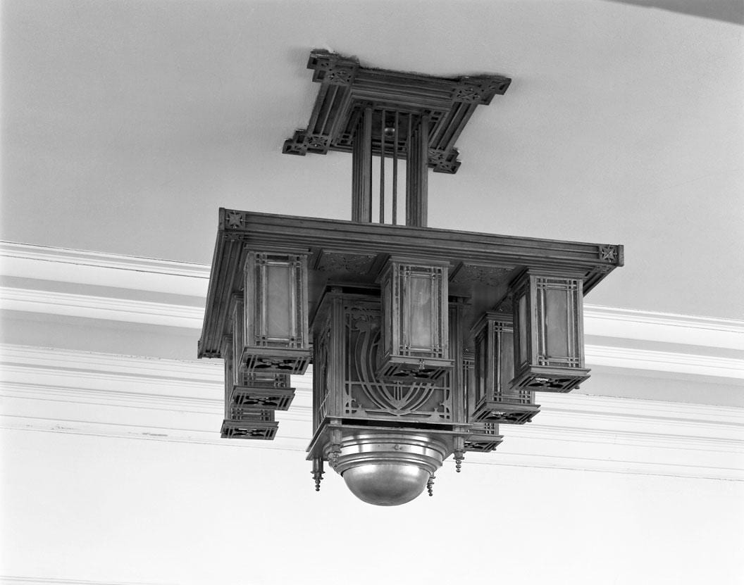 the babson house is often noted as exhibiting design characteristics used by sullivan’s mentee frank lloyd wright (e.g., overhanging eaves, long, horizontal lines, etc.), but the inclusion of polychromatic terra cotta was all sullivan. his concepts were evident throughout the building elements, but it still represents a work that may be seen as overlapping with the work of his students. elmslie would design the major aspects of the house, including the interior decoration and furniture. in fact all of the existing sketches, presentations and working drawings were in elmslie’s hand.