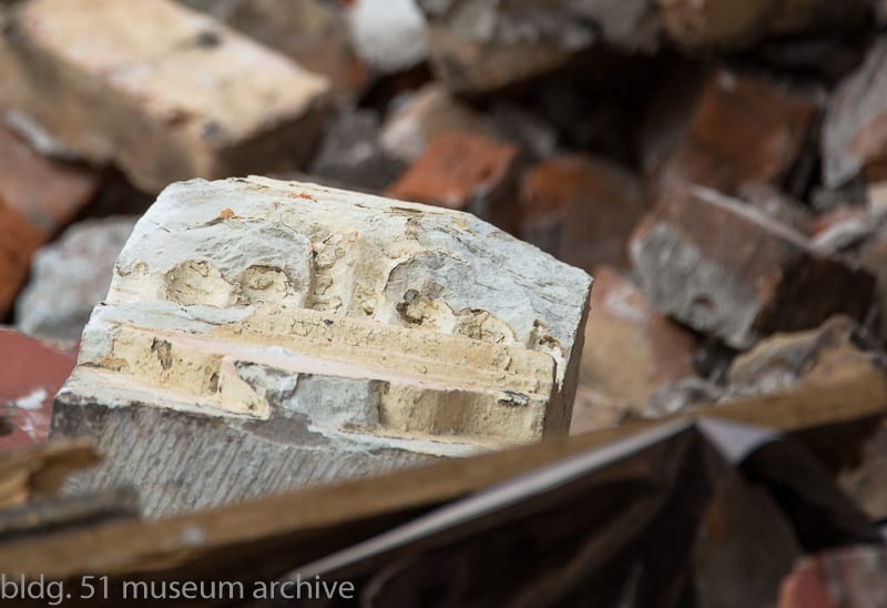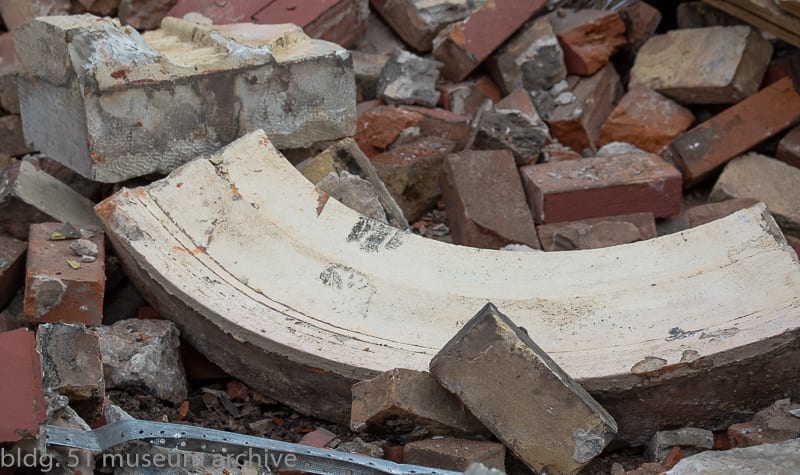 one of many lemont limestone window hoods destroyed during the building demolition.