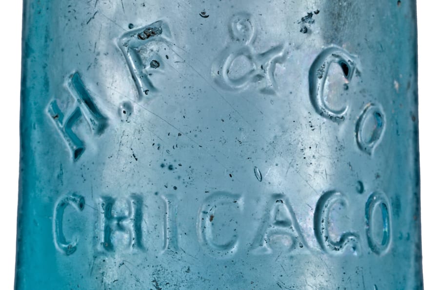 a few other bottles where found nearby, including a three-piece mold “black glass” m. keeley ale bottle, but nearly all had damage to one degree or another (with the exception of the h.f. & company aqua soda bottle fabricated by william mccully & company, pittsburgh, pa).