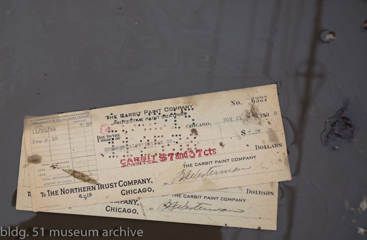 the former humboldt garage & auto service company building (1911) had a walk-in vault. shortly before that section of the building was demolished, the wreckers managed to open the door, where they discovered several ledgers, signs, salesman samples, blueprints, and other odds and ends left behind by the carbit paint company – the earliest checks date to 1938.