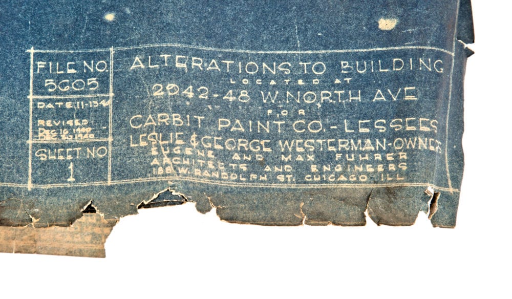 blueprints discovered in the walk-in safe offer detailed insight into any and all alterations made to the former humboldt garage in 1940, when carbit paint became the building’s second tenant, where they resided until the building was demolished in january of 2018