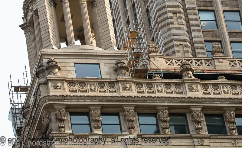 thousands of cream-colored terra cotta have been repaired or replaced – boston valley terra cotta was brought onboard to reproduce several sections of terra cotta ornament that have since been reinstalled on the building’s terra cotta facade (by looking closely at the images in this blog entry, identification of the newly made versus original terra cotta can be made by simply looking at the differences in glaze (e.g., the newly fabriated terra cotta has a might lighter finish).