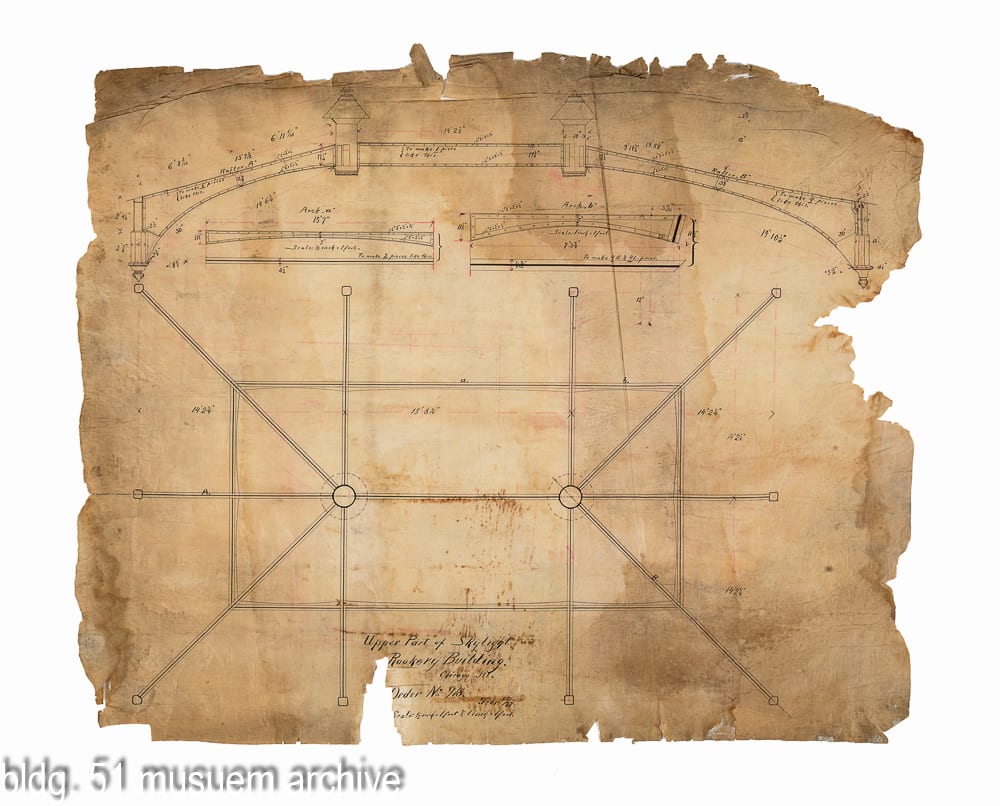 not without purpose, this documentation was critical by a more recent acquisition pictured below. the original drawings shown here are of the rookery’s the light court skylight.