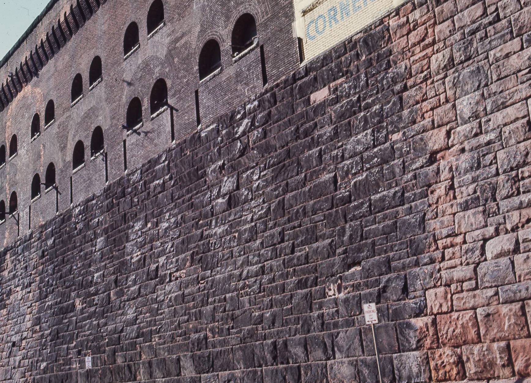 the first image of the rusticated stone wall, with all of its layers, crudities, color, and character is truly a sight to behold. the second image is the the first image blown-up to get a better grasp on the stone configuration and surface character. the building is undergoing demolition in the last image.