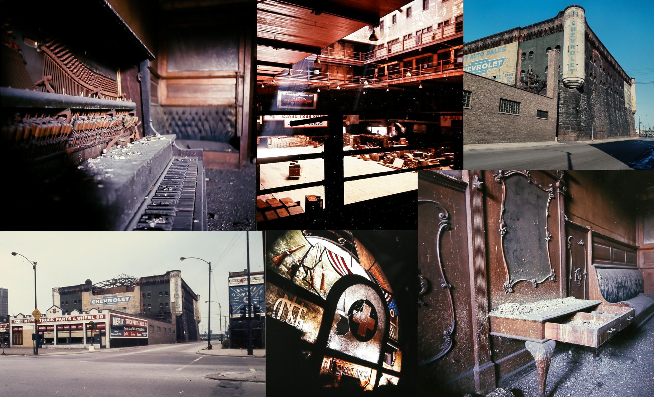 both vinci and richard nickel recorded the building’s demolition – inside and out, with vinci shooting in color and nickel black and white. i believe they both shot using hasselblad 500 c medium format camera.