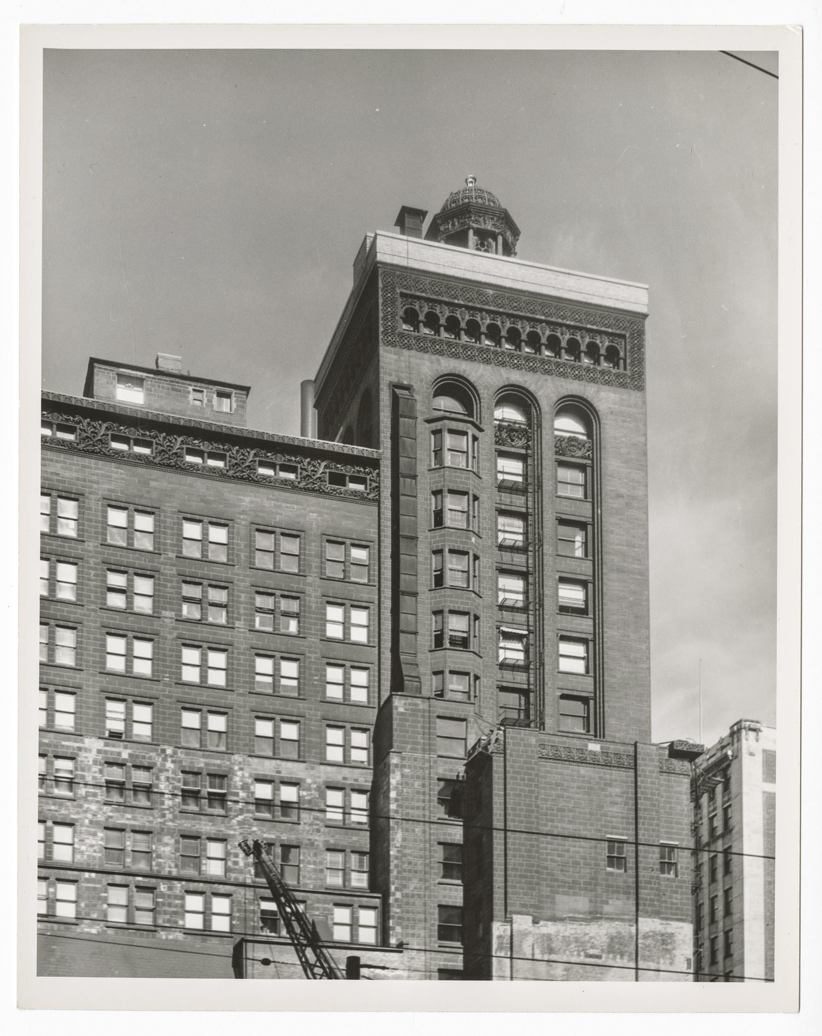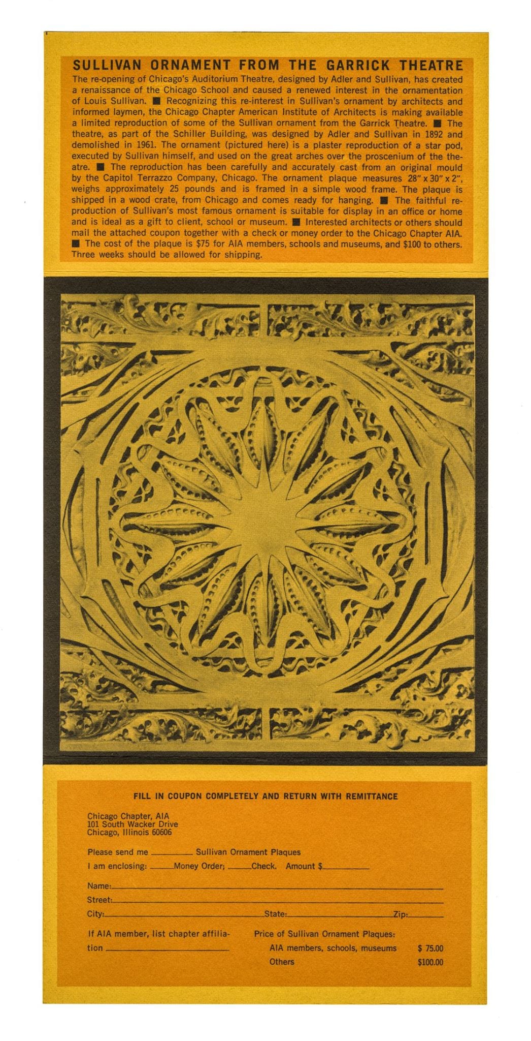 nickel’s photographs specifically helped to record and elevate the building for posterity, rendering in black and white the sullivan-designed plaster work that had been garishly painted, thus reorienting attention to the form. nickel passionately attempted a campaign to save the garrick, plying philanthropists to join his effort and soliciting letters from various public figures. a month before the demolition was to occur, telegrams and letters of protest poured into the mayor’s office, including from the likes of frank lloyd wright’s widow, le corbusier, arthur drexler (the director of architecture and design at the new york moma), lewis mumford, and more. a lengthy court battle, picketing, and nickel’s grassroots effort did not prevent the garrick from being turned to rubble. alternately, it did bring great attention to the vulnerable status of extant sullivan buildings, and mobilized the preservation movement.