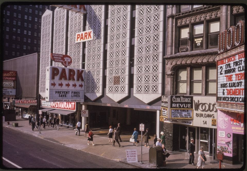 simultaneously, and in symbiotic fashion, the early twentieth century saw the stretch of randolph street between state and clark streets become a national center for popular sheet-music publishers; filling the garrick and neighboring office buildings, they sold their new material to traveling vaudevillians. in 1950, the theater was closed and converted into a television studio. seven years later, it was sold to balaban and katz, who reopened the building as a movie theater. eventually balaban and katz no longer considered the architectural gem commercially viable, and made a deal to wreck the building and redevelop it – tragically – as a parking structure.