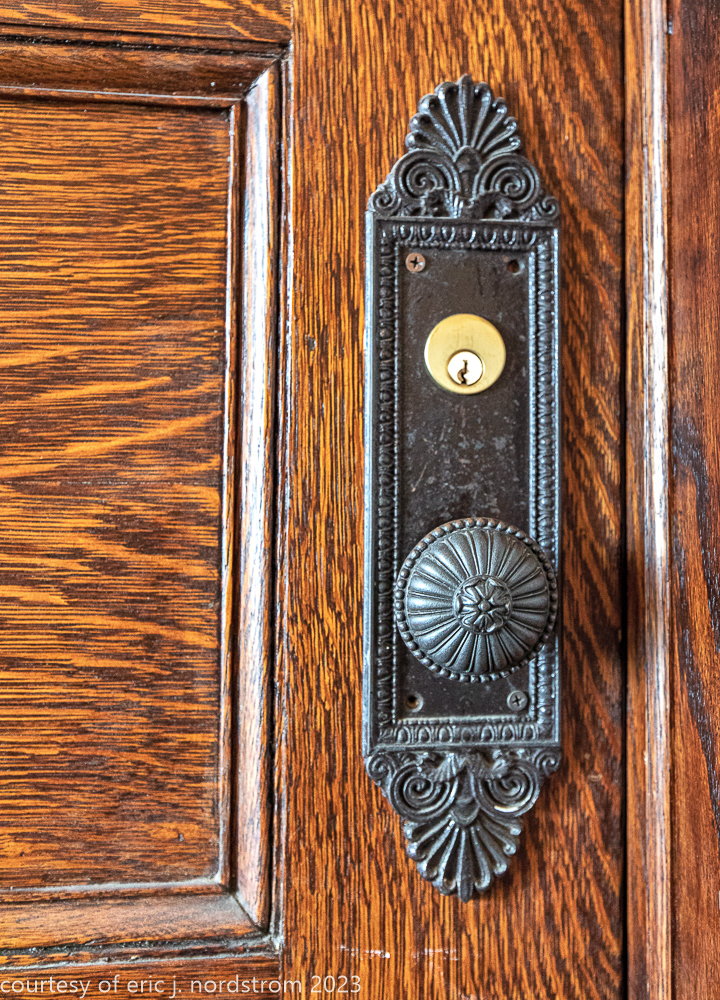 recent photographic survey of the original, custom-designed copper-plated ornamental cast iron interior elevator doors, surrounds, cabs, up/down illuminated lanterns, and oversized push-button call boxes installed during the transformation of solon s. beman’s studebaker carriage depository building (1885) into the fine arts building in 1898 (the subsequent floor additions and extensive alterations were also carried out by beman).