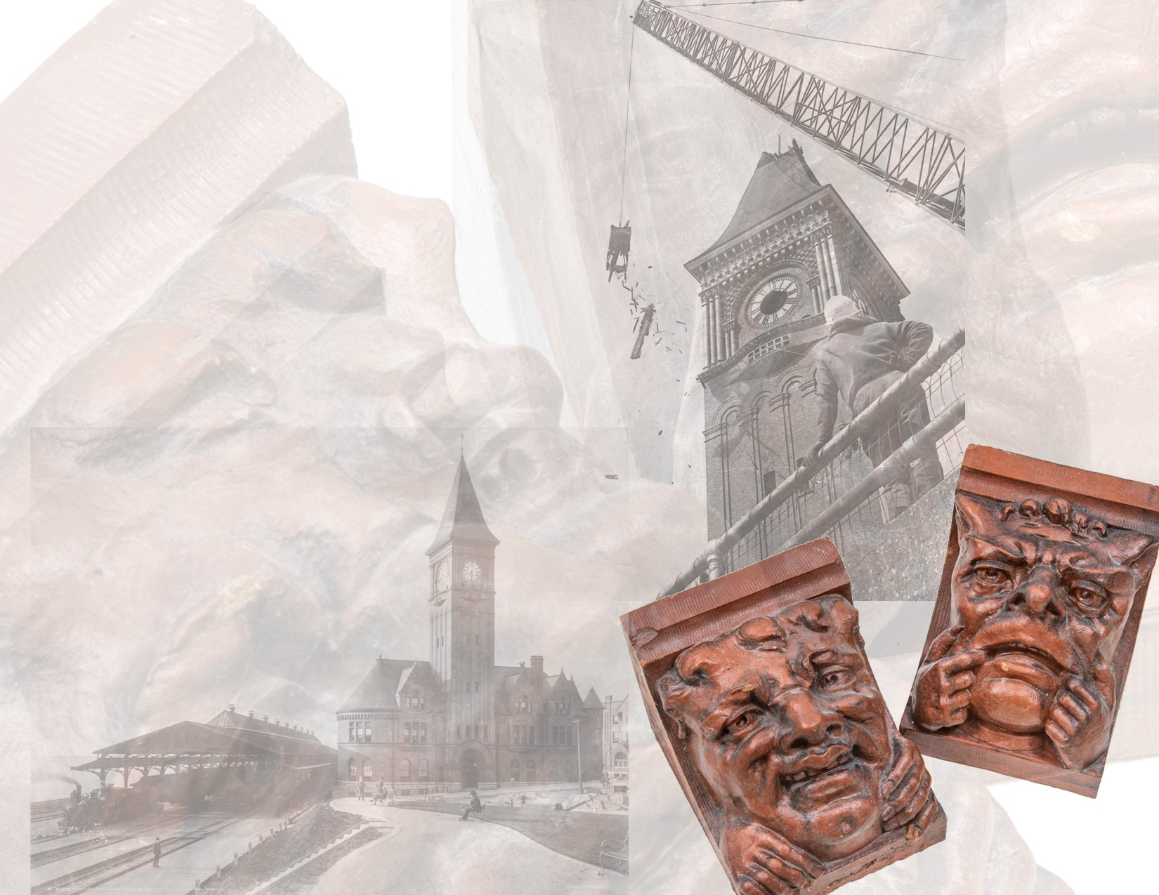 two original red slip glazed terra cotta grotesque face exterior...
