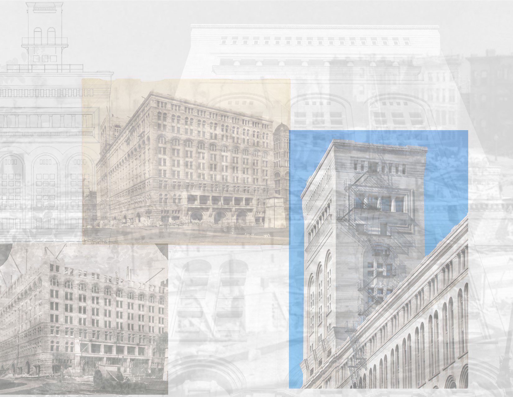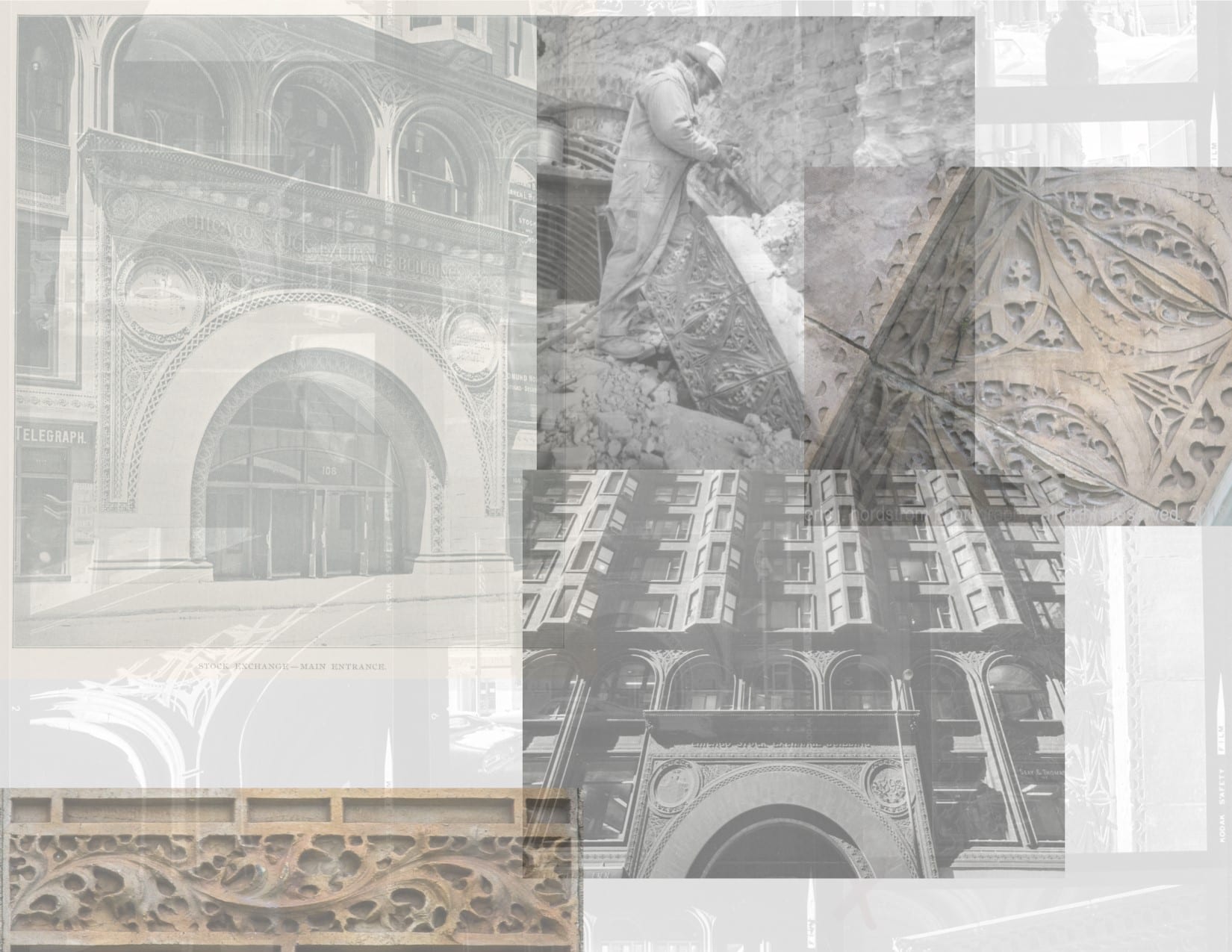 a collection of images chronicling adler and sullivan's walker warehouse...