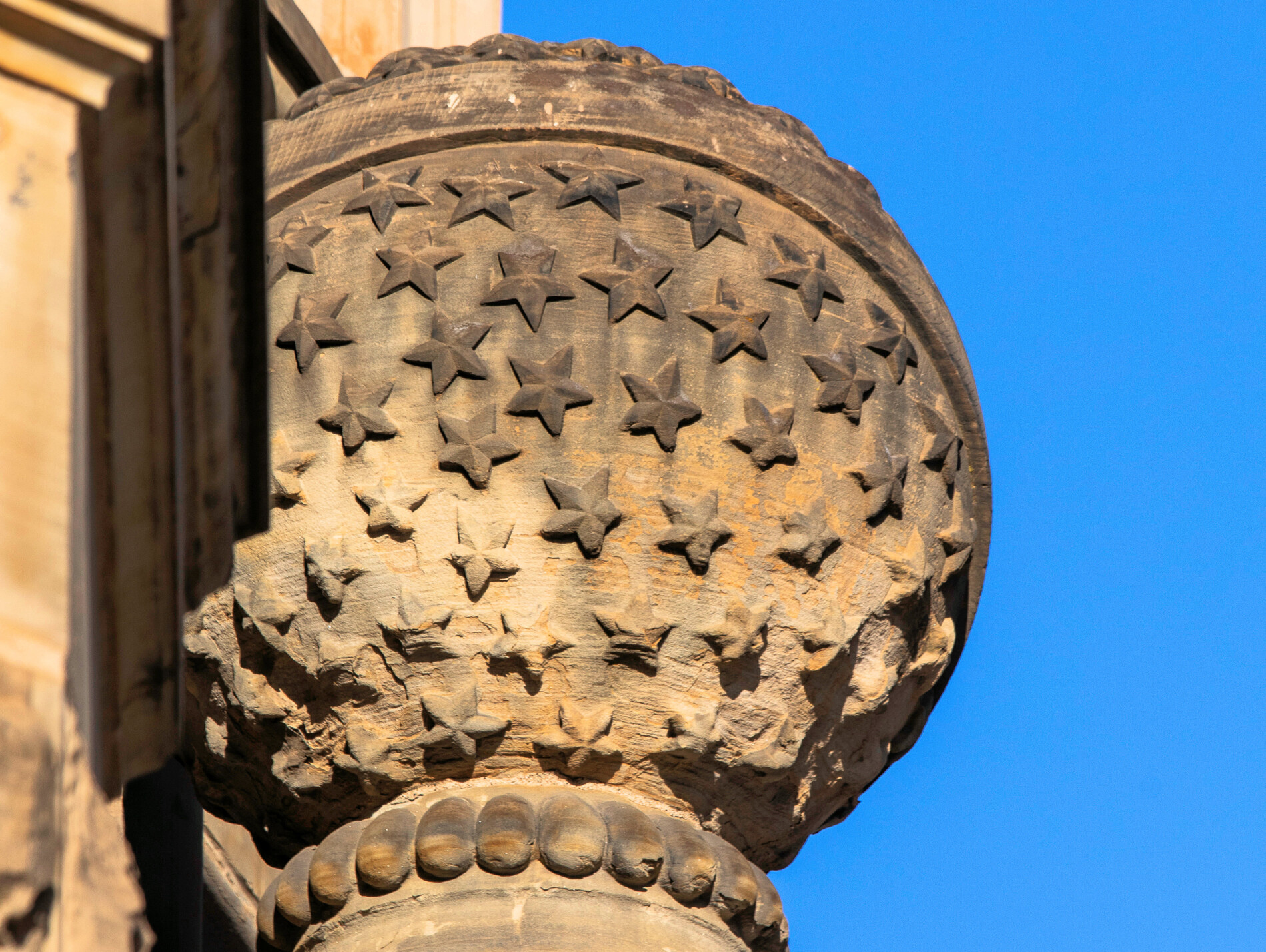 exterior photographic survery (ornament detail) of george kingsley's jackson storage...